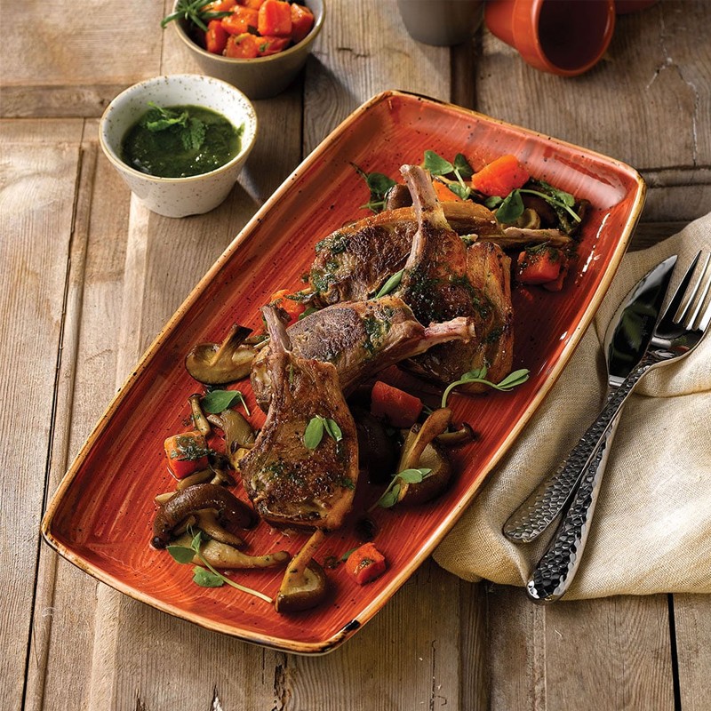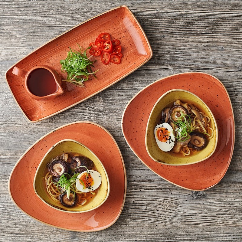 Το σχέδιο Homespun είναι μια σύγχρονη εκδοχή της κεραμικής στούντιο, με ένα ομόκεντρο μοτίβο τυπωμένο υπόστρωμα στο περίγραμμα.