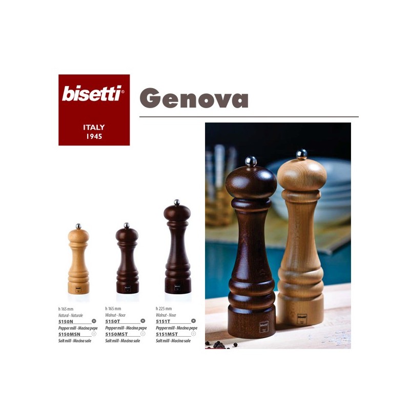 Μύλος Αλατιού Ξύλινος Καρυδιά Ύψος 22,5εκ Bisetti Genova