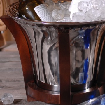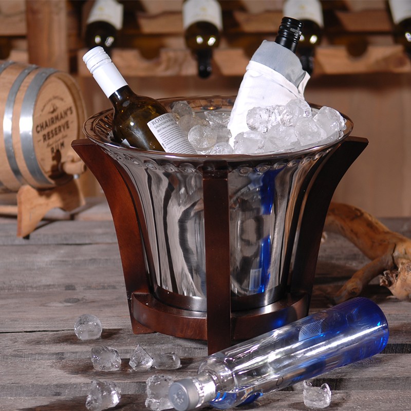 Σαμπανιέρα Ανοξείδωτη Σε Ξύλινη Βάση Φ34x28Υ