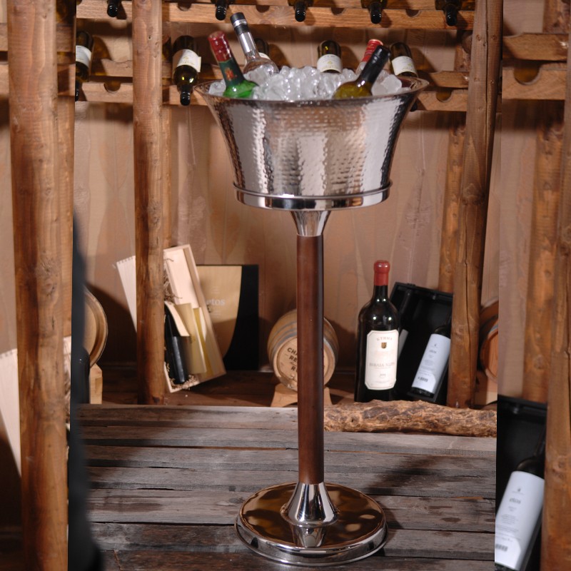 Σαμπανιέρα Ανοξείδωτη Διπλού Τοιχώματος Σε Ξύλινη Βάση Φ43 Υ71εκ