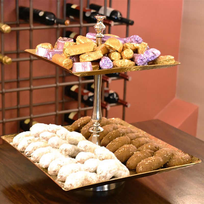 Αναδείξτε την παρουσίαση των εδεσμάτων σας με αυτή την εντυπωσιακή στρογγυλή εταζέρα δύο επιπέδων.