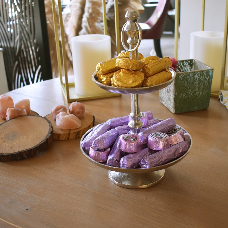 Με ύψος 38 εκ. και επίπεδα διαμέτρου 17εκ. και 25εκ. προσφέρει άνετο χώρο για την εντυπωσιακή παρουσίαση γλυκών, finger food και αλμυρών εδεσμάτων.