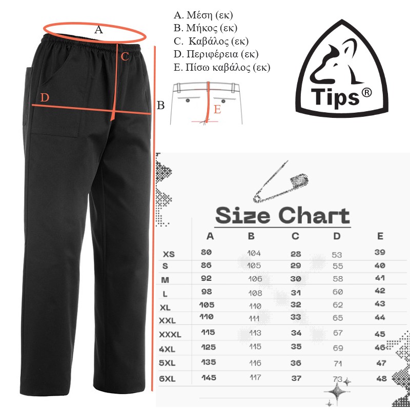 Tips Παντελόνι σεφ καρώ ίσιες τσέπες με λάστιχο και μαύρη πίσω τσέπη