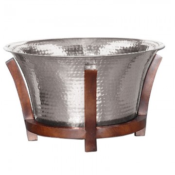 Σαμπανιέρα Ανοξείδωτη Διπλού Τοιχώματος Σε Ξύλινη Βάση Φ43 Υ71εκ
