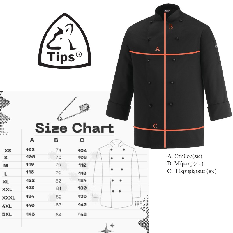 Tips Σακάκι Σεφ Άσπρο Basic Line Βαμβακερό Με Περαστά Κουμπιά Μακρύ Μανίκι