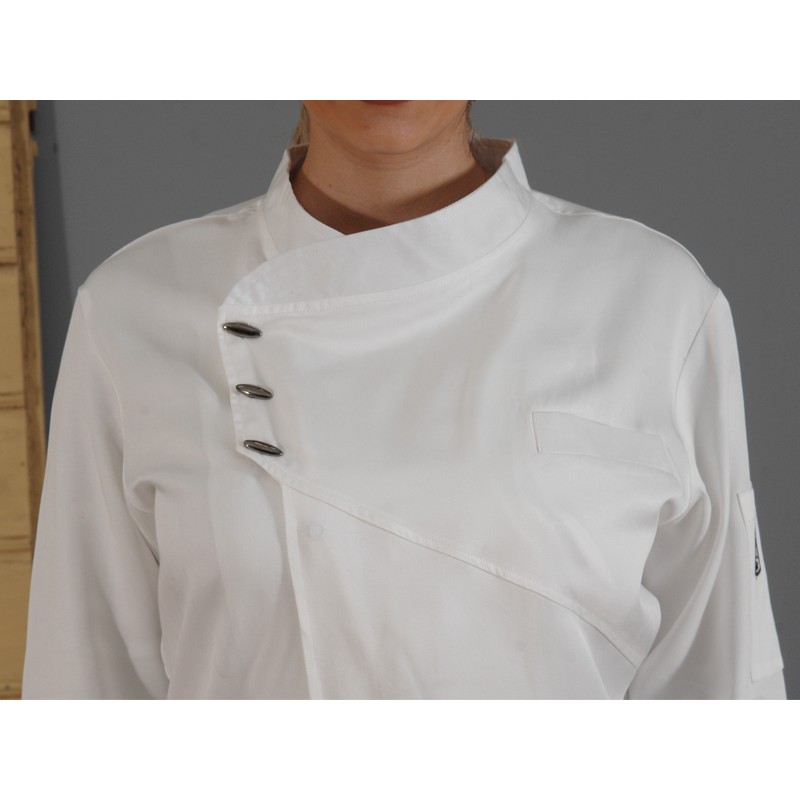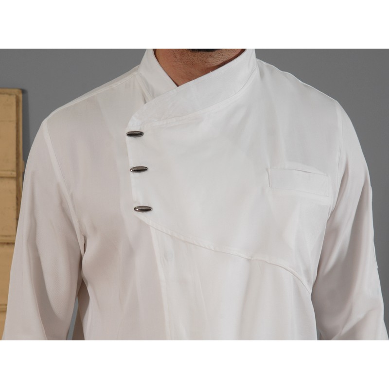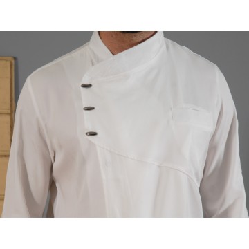 Tips Σακάκι Σεφ Άσπρο Ύφασμα Tencel Με Κλιπς Μακρύ Μανίκι