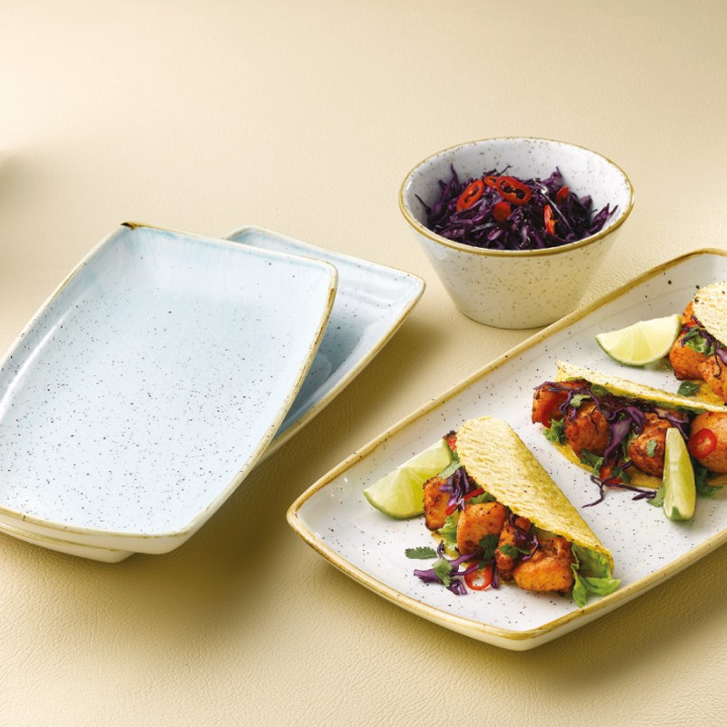 Καινοτόμα σχήματα και αντιδραστικά υαλώματα αναβαθμίζουν την παρουσίαση συνοδευτικών πιάτων, εμπνευσμένων γευμάτων και δημιουργικών πιάτων .