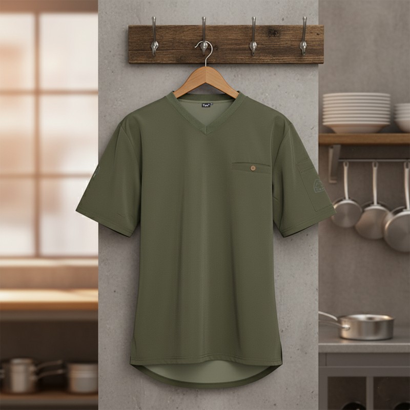 Μπλούζα σεφ με κοντό μανίκι χακί χρώμα
