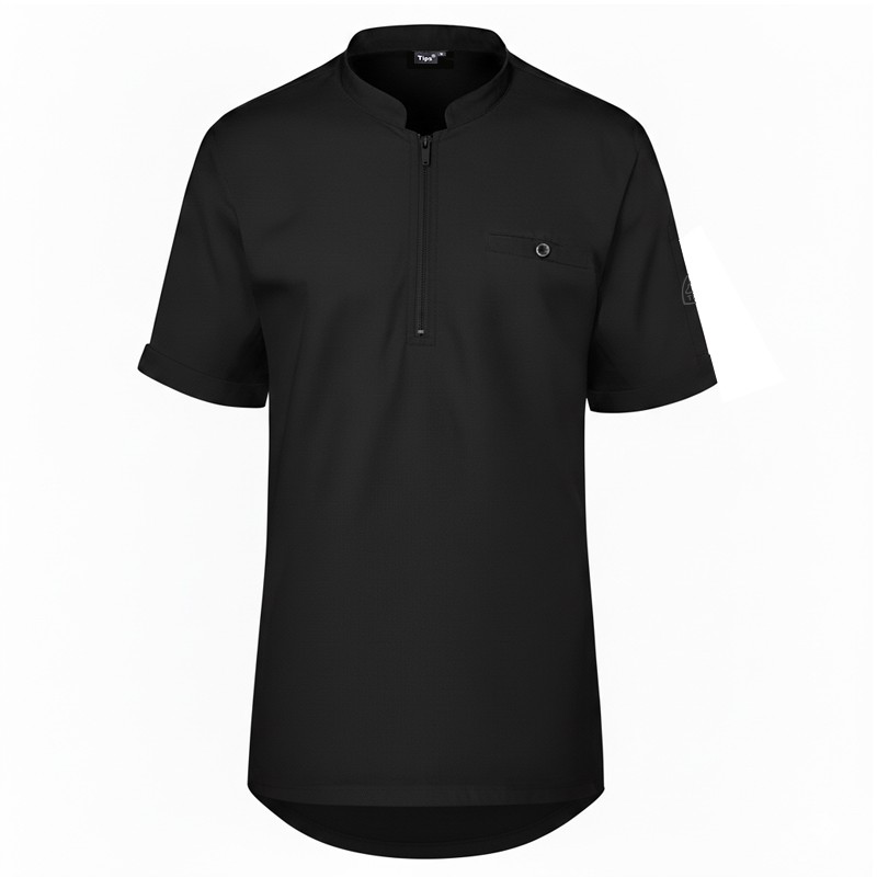 Μπλούζα Σεφ Pothos Μαύρη με φερμουάρ και κοντό Μανίκι Microfiber / Design by tips