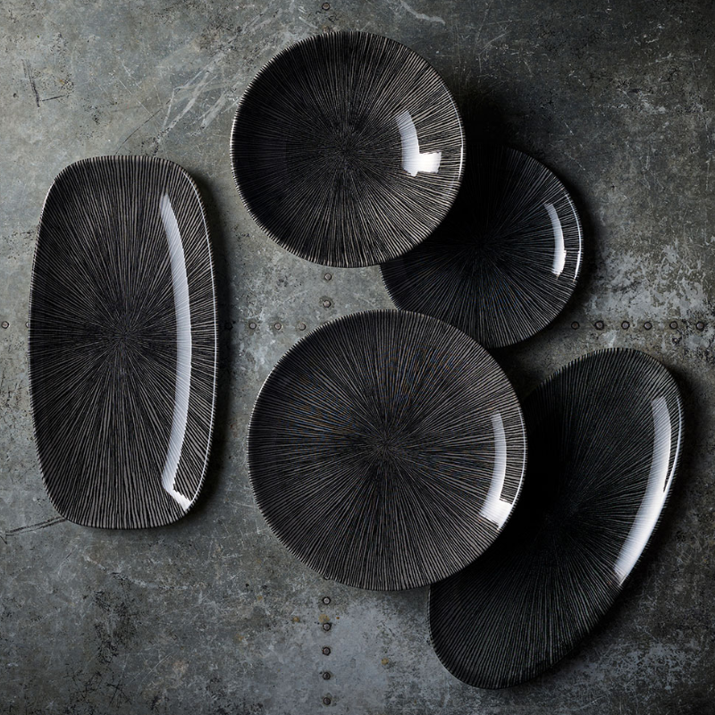 Το Studio prints Agano είναι γραμμικό και ακτινωτό που τραβάει το βλέμμα στο κέντρο του πιάτου, καθιστώντας το μοτίβο ιδανικό για παρουσίαση φαγητού.