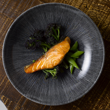 Το Studio prints Agano είναι γραμμικό και ακτινωτό που τραβάει το βλέμμα στο κέντρο του πιάτου, καθιστώντας το μοτίβο ιδανικό για παρουσίαση φαγητού.