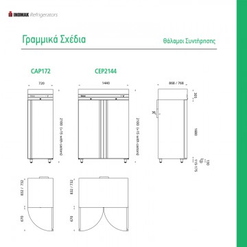 Ψυγείo Θάλαμος Συντήρησης με 2 πόρτες σε μαύρο χρώμα με ρόδες 1440x868x2100 Inomak CEPB2144/WH Multi-Purpose