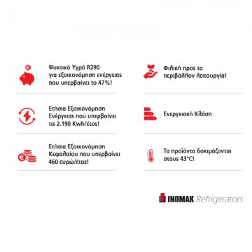 Λειτουργία με οικολογικό φυσικό ψυκτικό υγρό R290 (Μηδενικό ΟDP/GWP=3), εξοικονόμηση στην κατανάλωση ενέργειας, σε ποσοστό μεγαλύτερο από 20%!