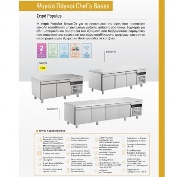 Η σειρά Populus ξεχωρίζει για το εργονοµικό της ύψος που προσφέρει εύκολη τοποθέτηση µηχανηµάτων µαζικής εστίασης από πάνω. Συρτάρια για είδη µαγειρικής και προστασία του εξατµιστή από διαβρωτικούς παράγοντες που υπάρχουν στο εσωτερικό του χώρο αποθήκευσης τροφίµων, κάνουν τη σειρά populus µια εξαιρετική λύση για όλες τις κουζίνες.