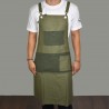 Ποδιά με δέσιμο στο λαιμό, ολόσωμη, καμβάς γκρι χρώμα με 100% δερμάτινες μαύρες τσέπες με δέσιμο στο λαιμό