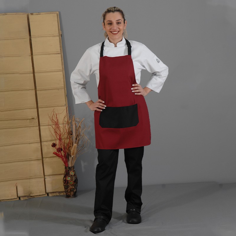 Tips Ποδιά Ολόσωμη Κοντή Μπορντώ Με Μαύρη Τσέπη