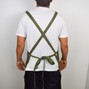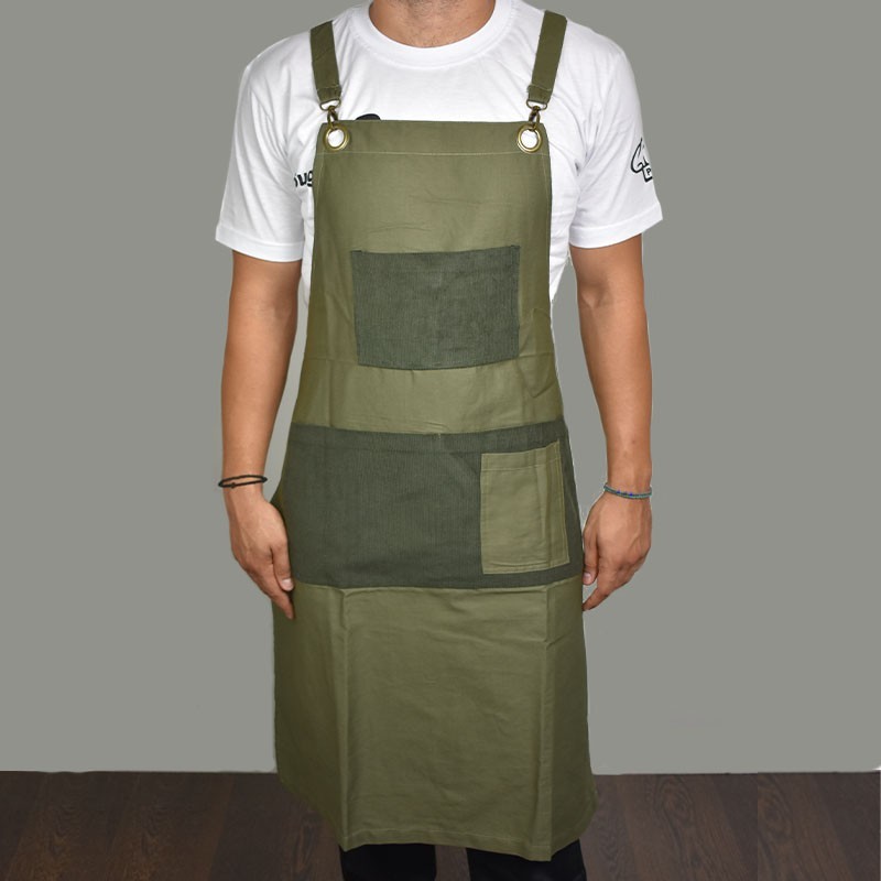 Ολόσωμη ποδιά Με Χιαστή Δέσιμο Της Tips σε Λαδί Χρώμα Και Χακί Λεπτομέρειες-Κοτλέ Ύφασμα