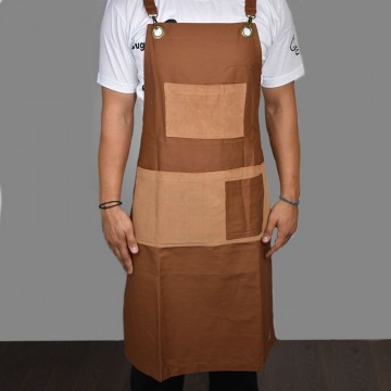 Tips Ποδιά Ολόσωμη Με Χιαστή Δέσιμο Ύφασμα-Κοτλέ Καφέ - Μπέζ