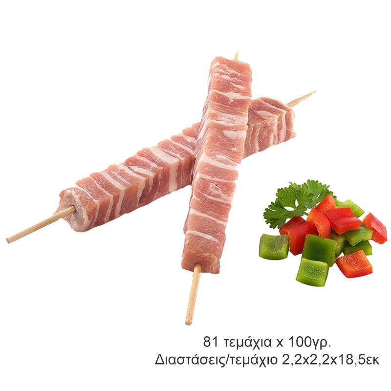 Πρόκειται για το κλασικό Ελληνικό σουβλάκι, τετράγωνο, με ιδανική ισορροπία πάχους εξασφαλίζοντας τέλειο ψήσιμο κάθε φορά.