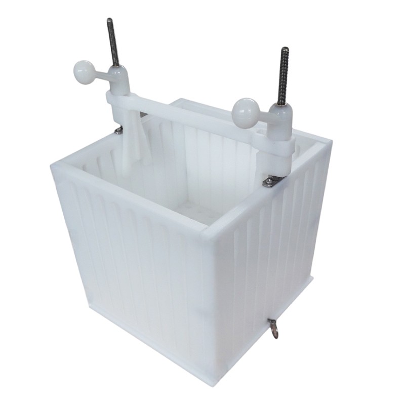 Από ανθεκτικό πλαστικό κατάλληλο για τρόφιμα, ανθεκτικό στη φθορά και τη χρήση.
