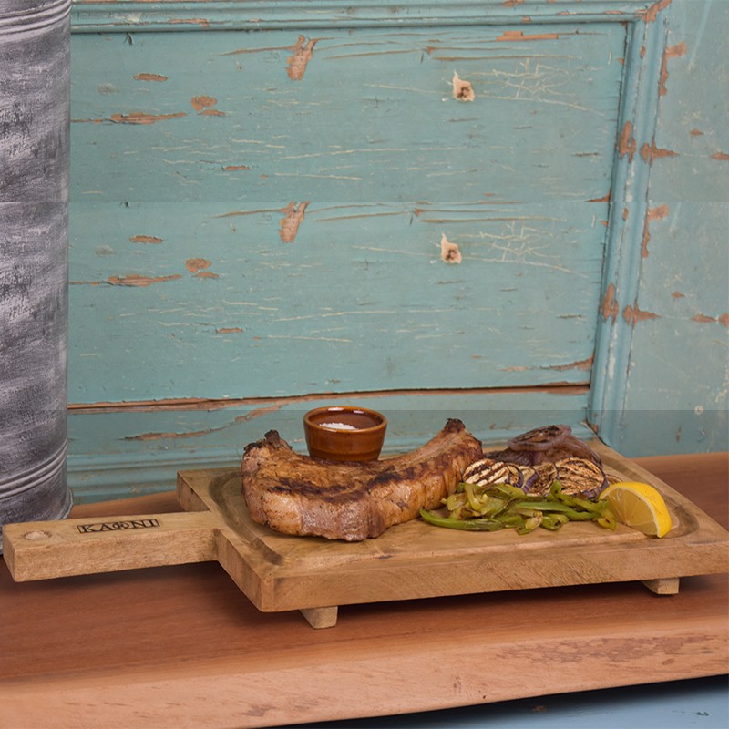 Μερίδα κρεατικών σε Ξύλινη Πιατέλα Nakaro® Με Βάση και Αυλάκι 50x22εκ Φυσικό Χρώμα
