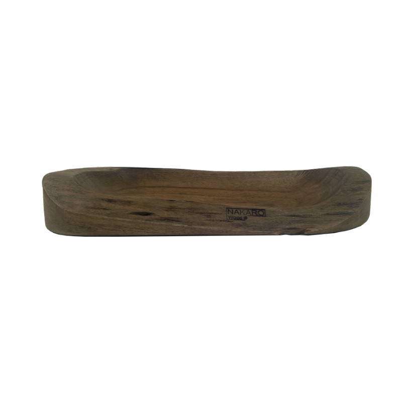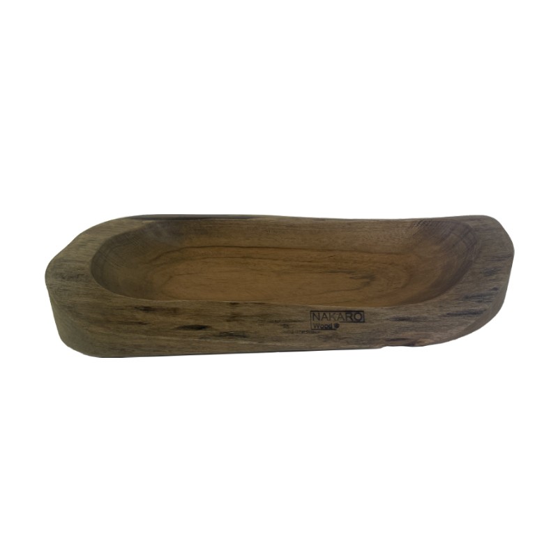 Nakaro® Ξύλινο Ορθογώνιο Ασύμμετρο Μπωλ σερβιρίσματος Καρυδί Χρώμα 40x22εκ