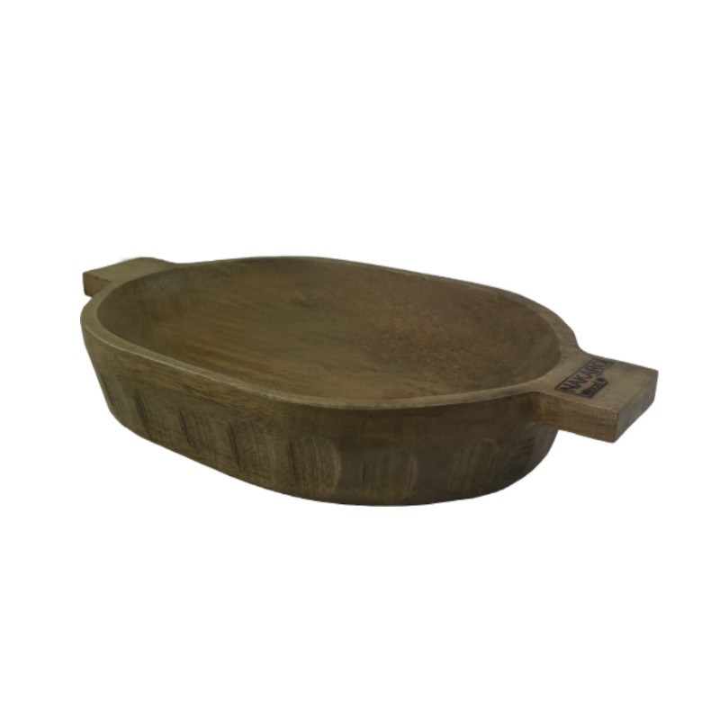 Nakaro® Χειροποίητο Μπώλ Σερβιρίσματος Με Λαβές Φυσικό Χρώμα 35x21x5,5Υεκ