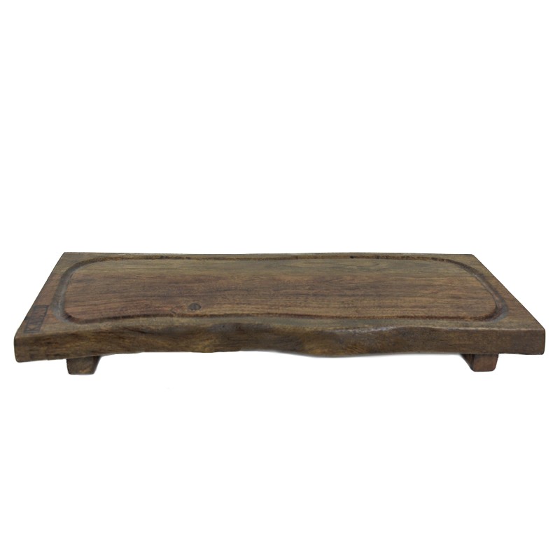 Nakaro® Xειροποίητο Ξύλινο Πλατώ Σερβιρίσματος Με Βάση Kαι Αυλάκι Με Επεξεργασία παλαίωσης 60x25x5Υεκ