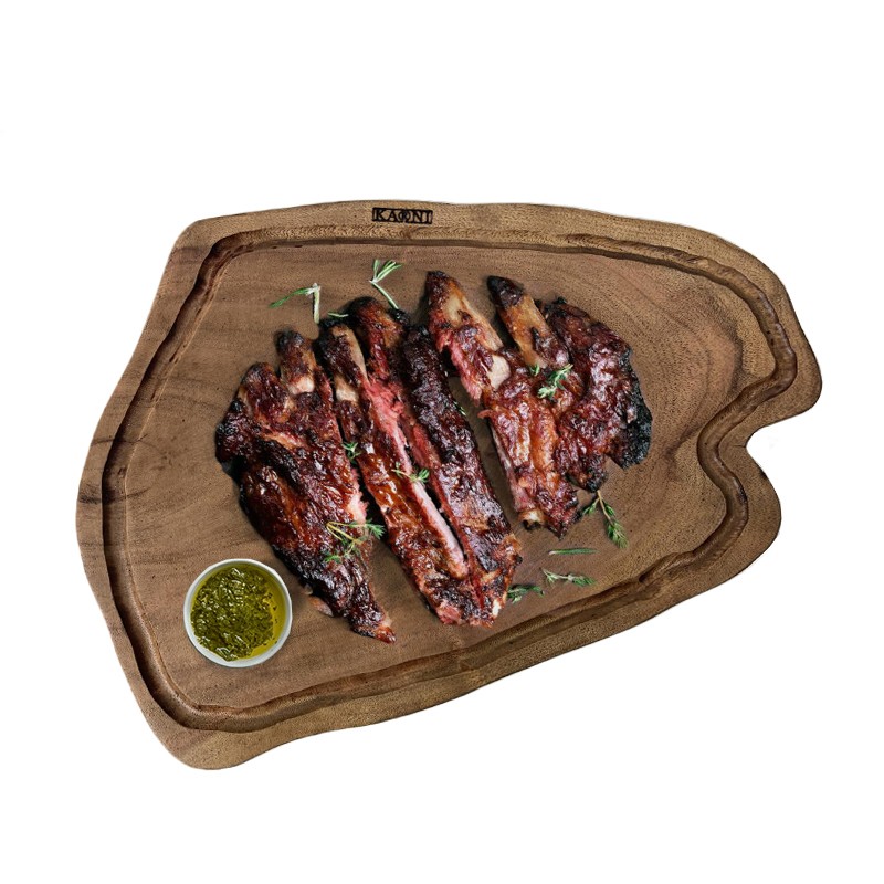 Nakaro® Xειροποίητο Ξύλινο Πλατώ Σερβιρίσματος Με Αυλάκι 38x28x3Υεκ